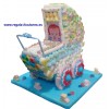 Carrito de bebé extragrande elaborado con nubes y gominolas.