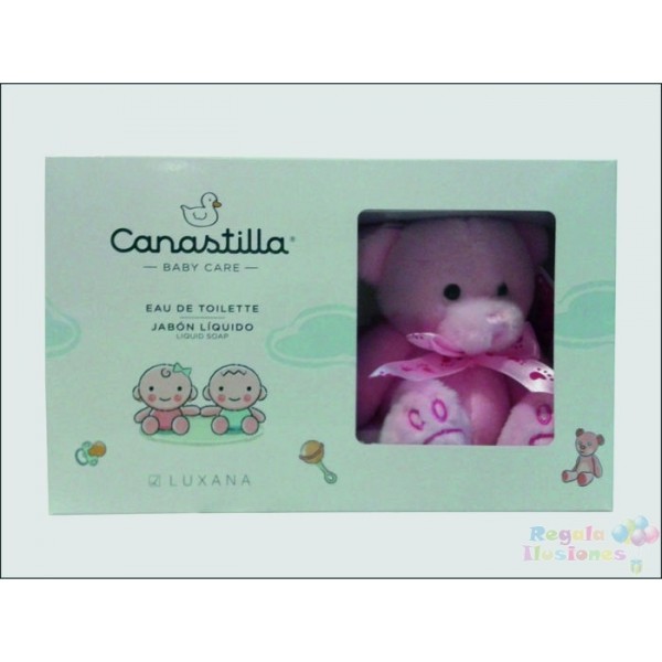 Estuche Canastilla especial para regalo, compuesto por colonia, jabón líquido y peluche